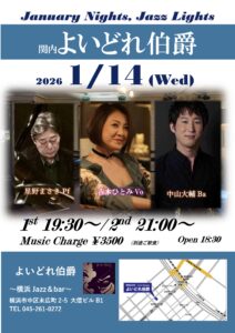 Open 12時 1st/13:00〜、2nd/14:10〜、共演 : 井上ゆかり(Pf) 河原秀夫(Ba)